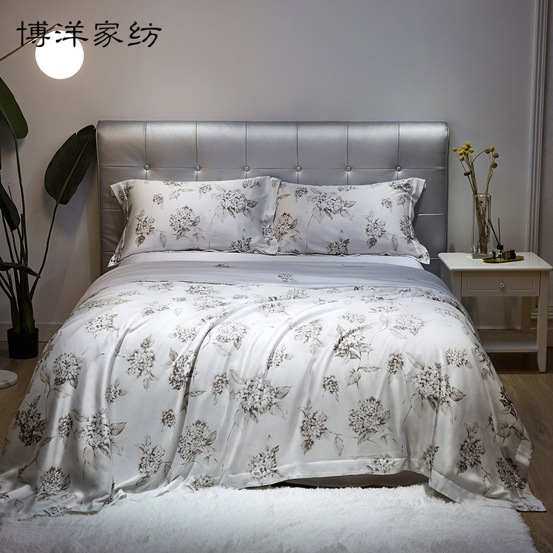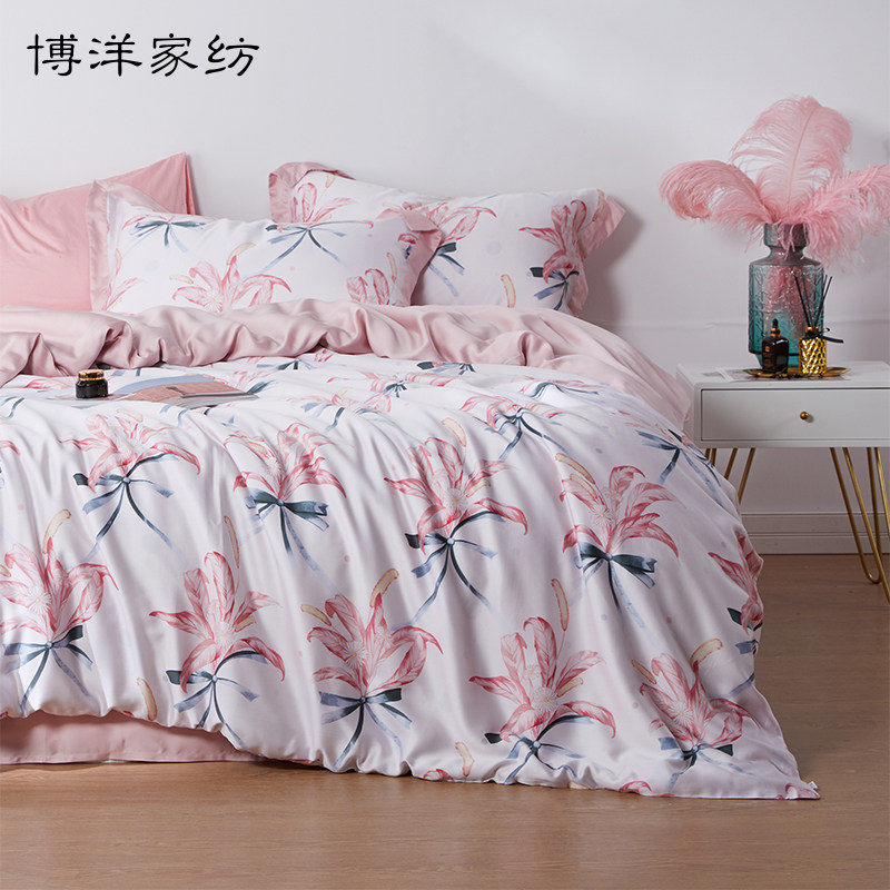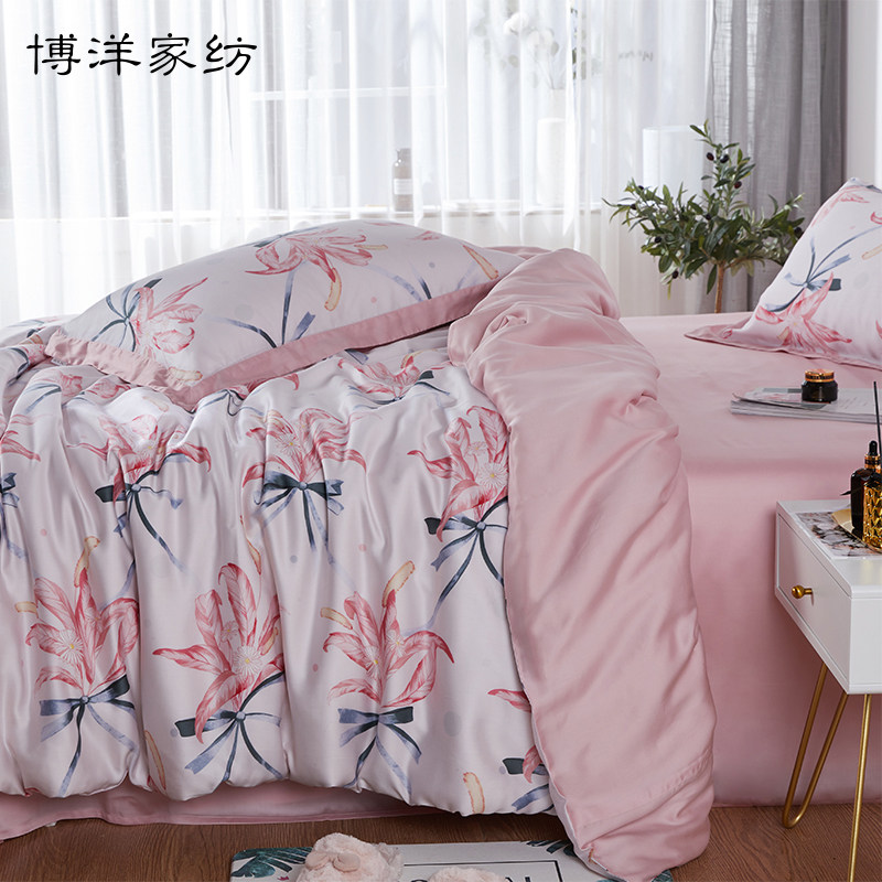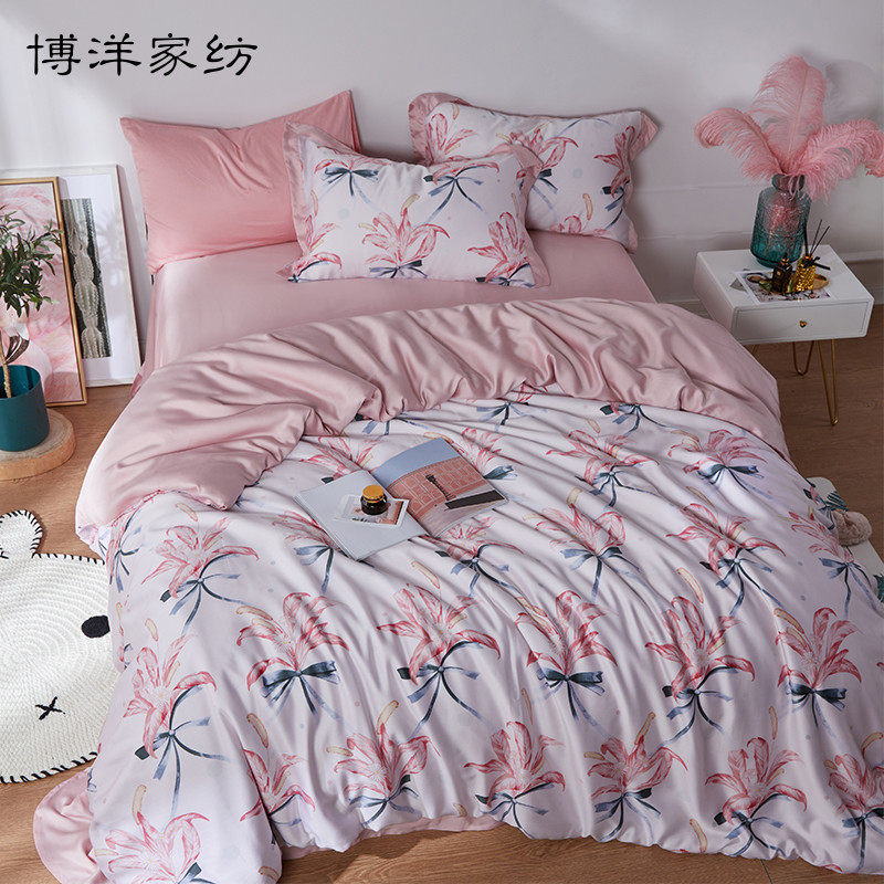 Boyang Home Textiles 40 Tencel Four-piece Set Silky Nude Sleeping Sheets Simple Ice Silk Cool Bedding Quilt Cover Summer
