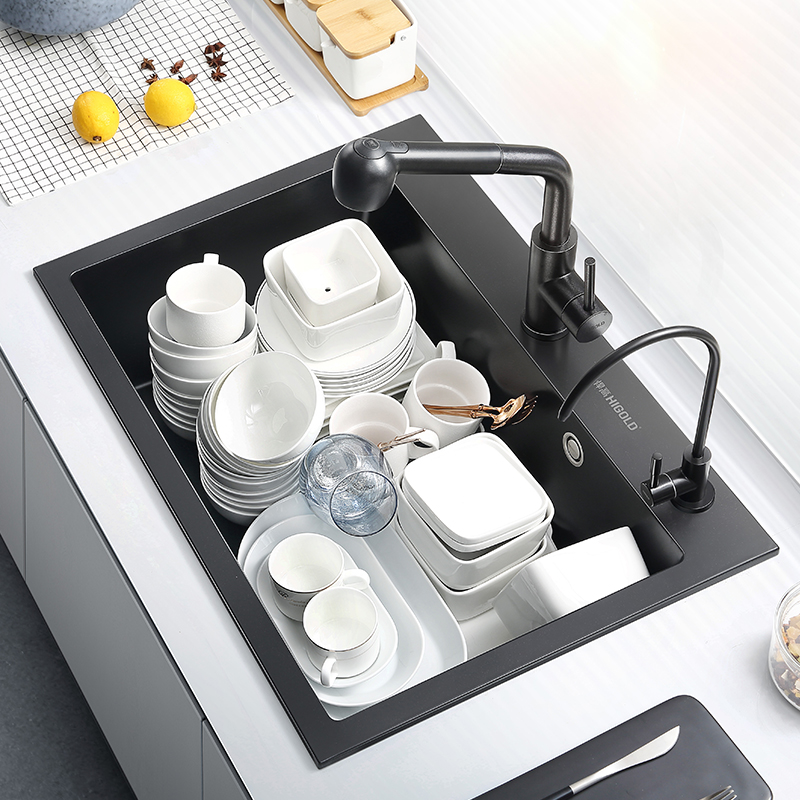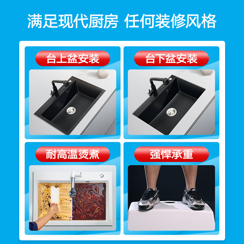 Hougao kitchen quartz stone sink vegetable sink Single sink Black granite dish sink Pool table off-stage package
