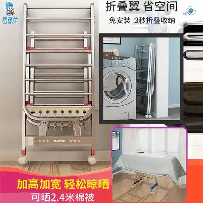 Stainless steel drying rack floor-to-ceiling folding indoor household balcony cool drying hanger baby diaper rack towel drying quilt rack