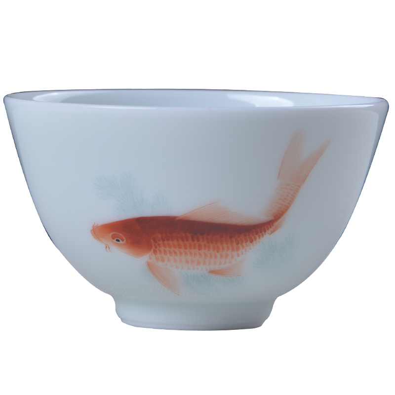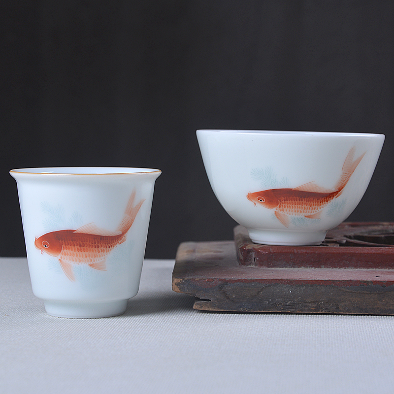 Jingdezhen Handicrafts Hand-drawn Koi jade glaze cup cup Master cup Goldfish tea cup High-end large