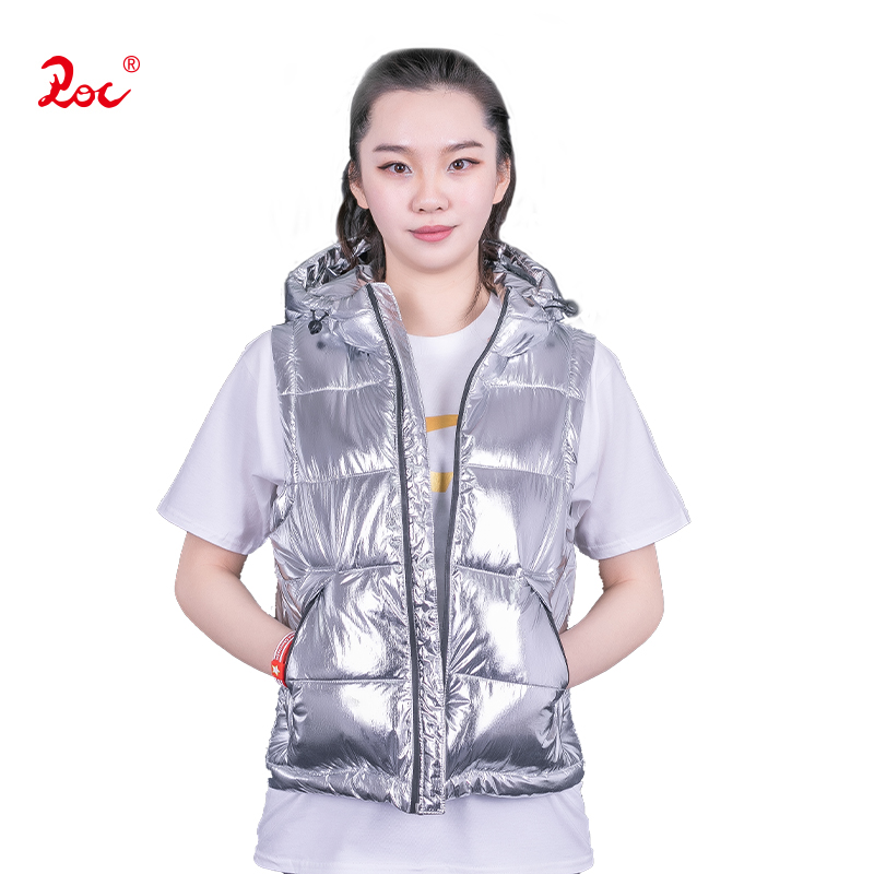 ROC space silver cotton padded jacket with removable sleeves - cheerleading nylon waterproof fashion trend to keep warm in winter