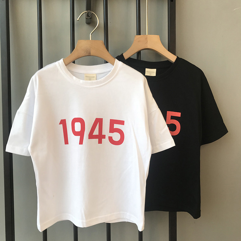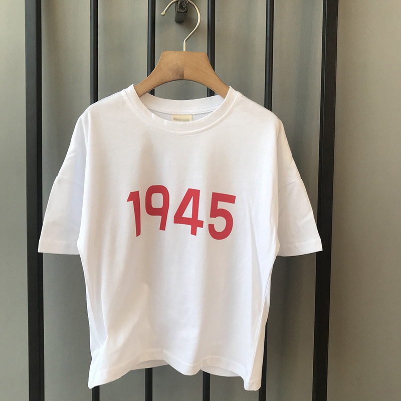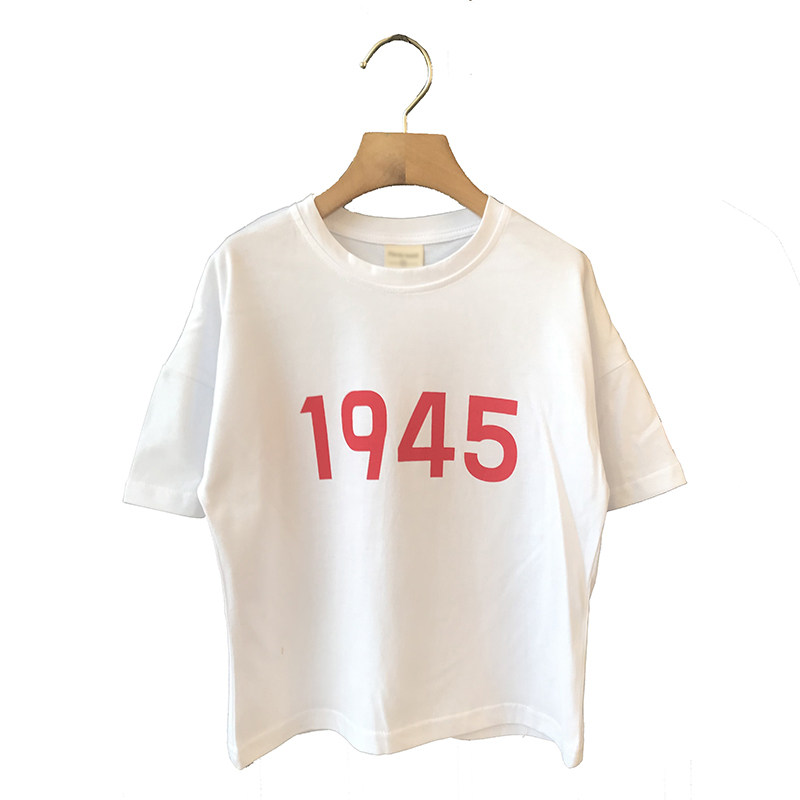Korean version 2021 new children minimalist trendy short sleeve cotton t-shirt medium and small children clothing fashion pure colour printed blouses