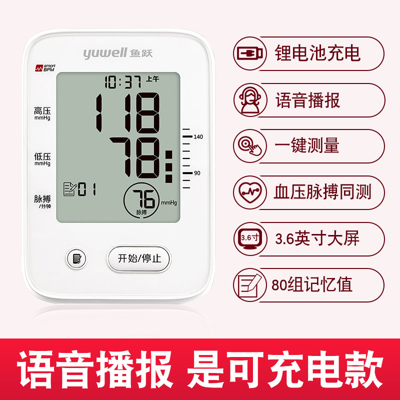 Yuyue Blood Pressure Meter High Precision Electronic Pressure Gauge Home Precision Blood Pressure Meter Fully Automatic Measuring Meter Medical