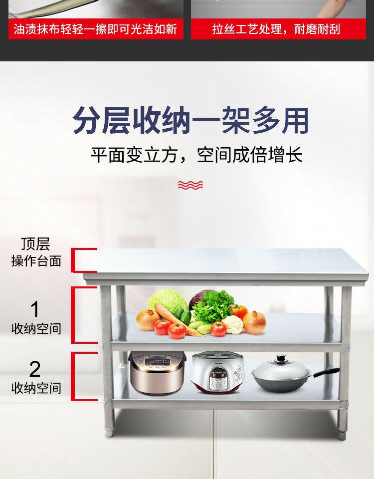 Stainless steel workbench disassembly and assembly Double-layer three-layer commercial table Hotel kitchen console Loading table Packing table