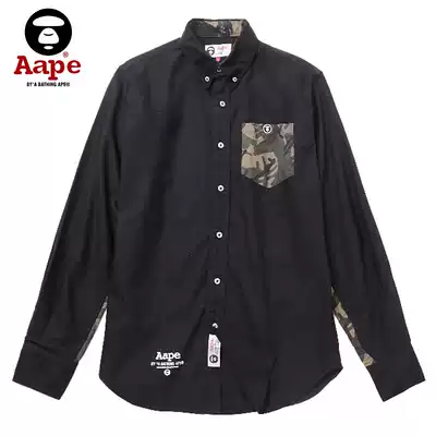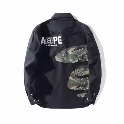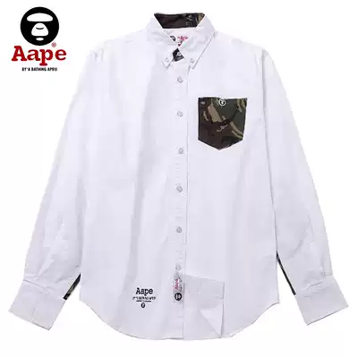 Japanese Tide brand APE shirt men Oxford textile camouflage stitching badge embroidery loose couple apes apes casual shirt