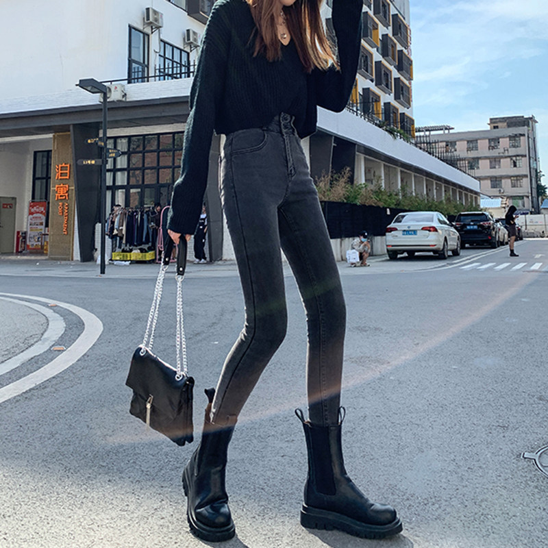 2022 Spring summer new ultra-high-waist tobacco grey jeans women fit tight and slim 90% smoke pipe pants