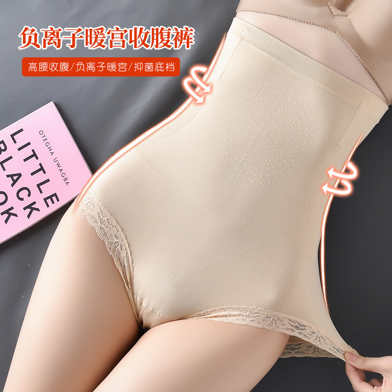 Explosions negative ion warm palace high waist corset pants waist hip maintenance underwear body shaping pants lace border briefs women