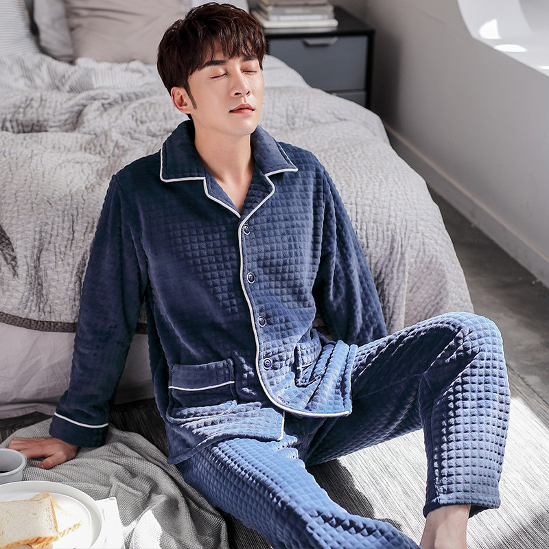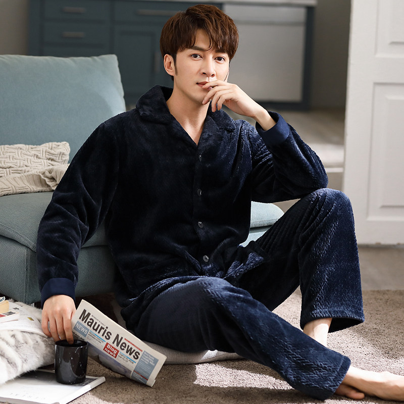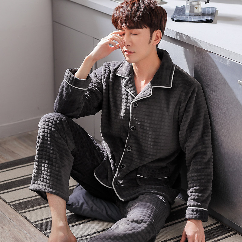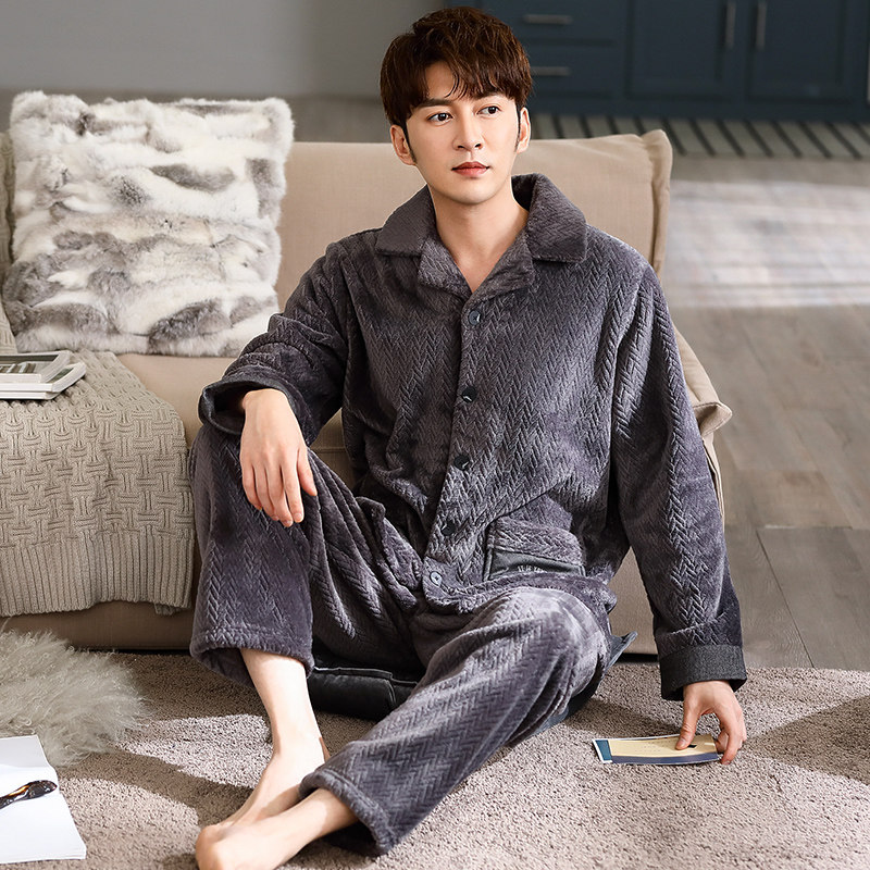 Men's sleepwear fall winter style Garvelvet Thickened Coral Suede Suit Winter Flannel Winter Big Size Dad's Home Clothes