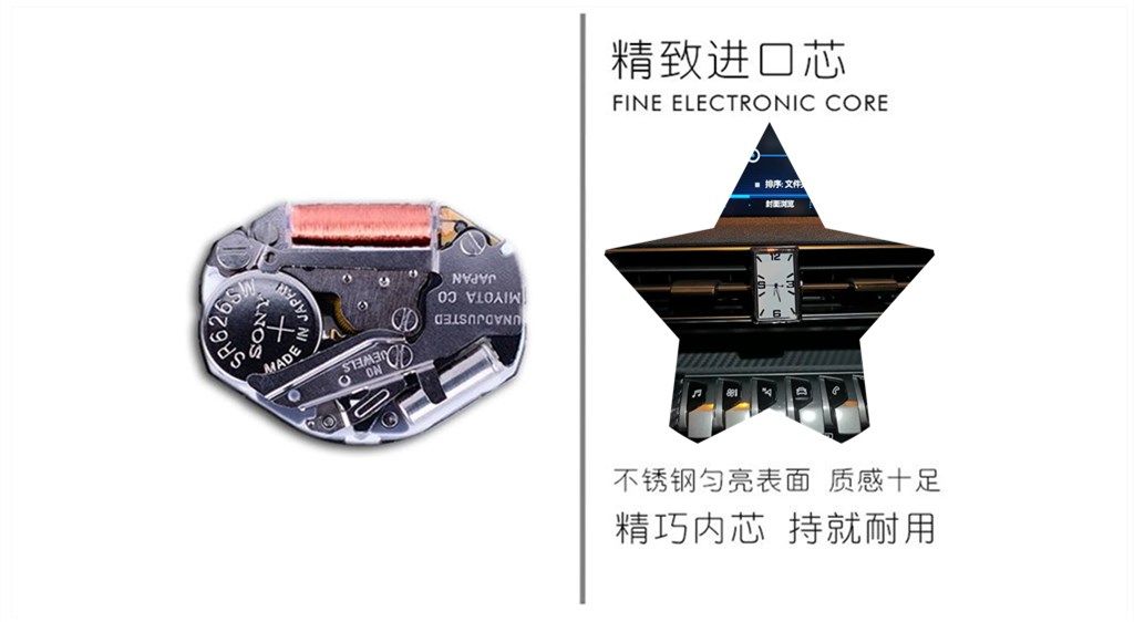 Peugeot 4008 5008 Citroën Car Electronic Watch Quartz Watch Air Conditioner Air Outlet Square Luminous