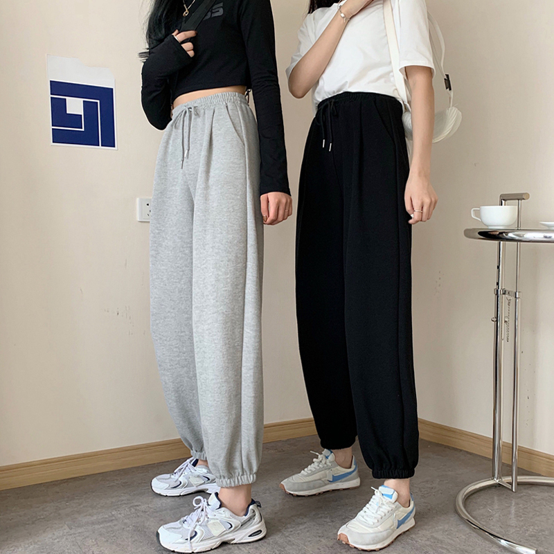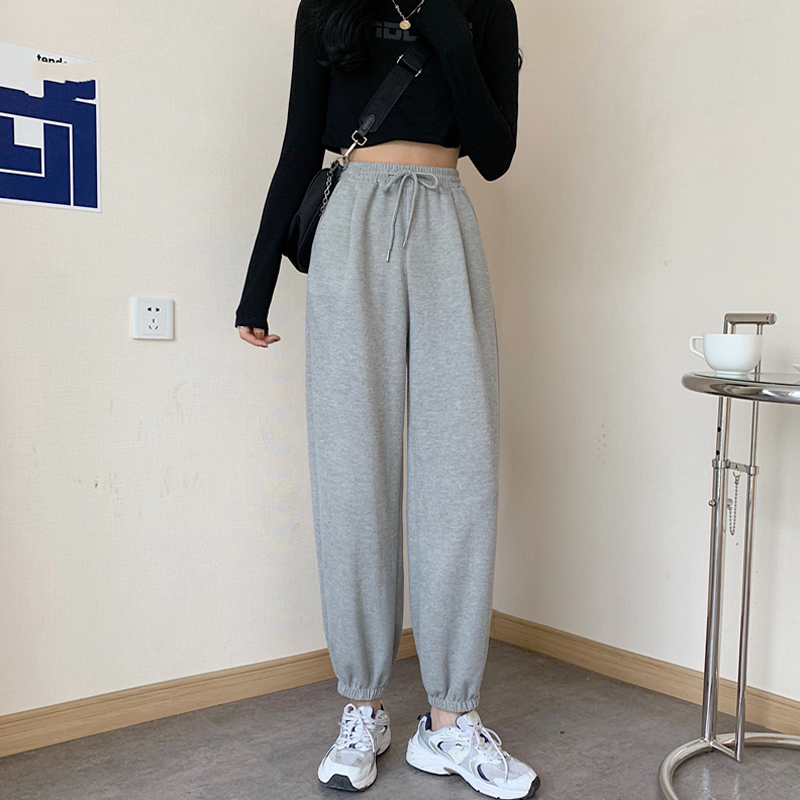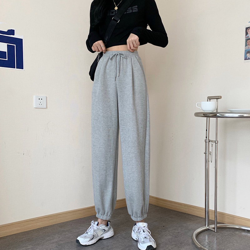 Large size women's trousers gray sweatpants women's 2022 new loose and lazy style leggings casual pants wide-leg all-match thin
