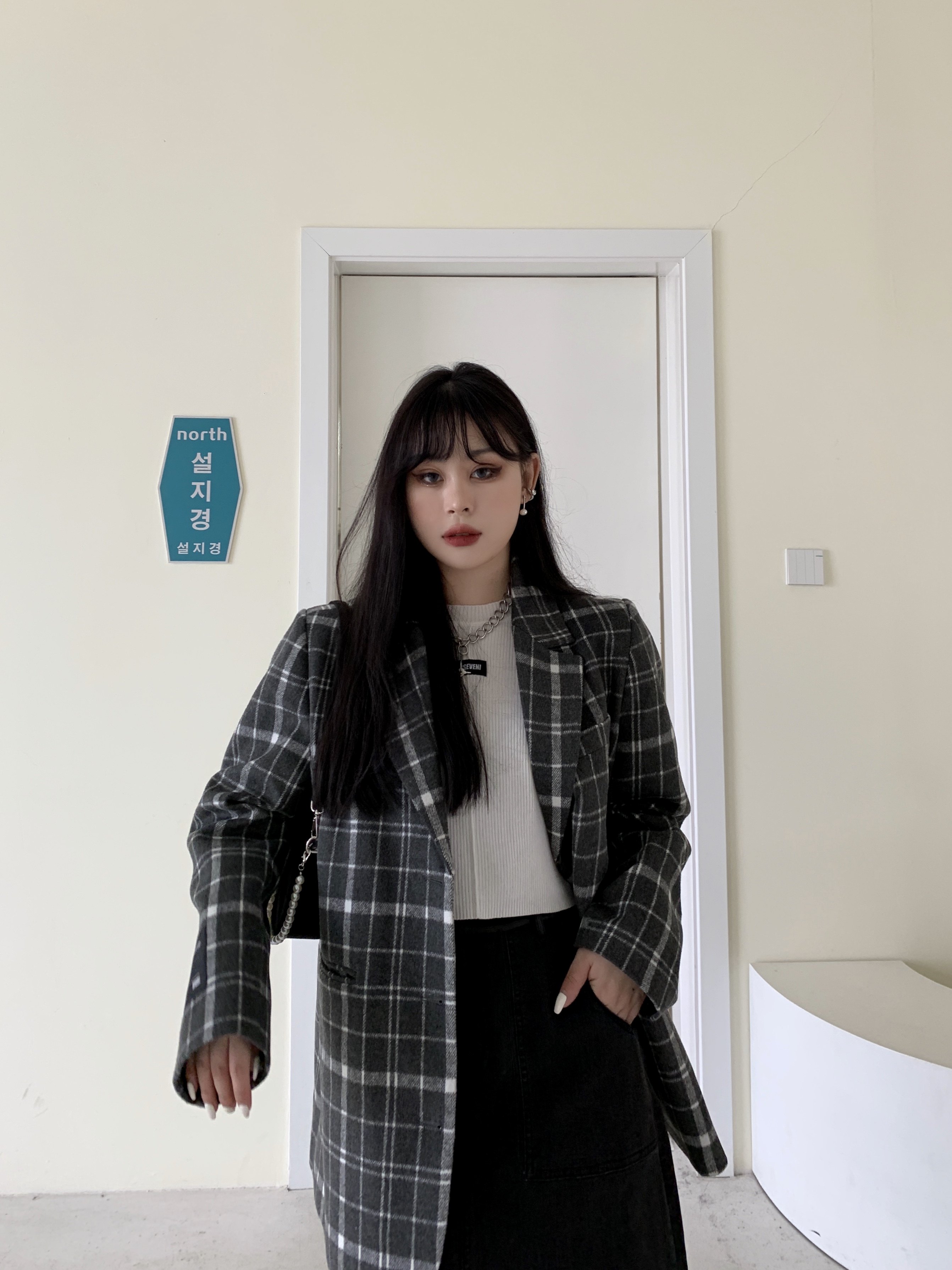 Kurosaxuan Seven Micro Fat mm2020 Autumn Winter New Korean Version Loose size Size Plaid Retro Fur Suits Jacket Woman