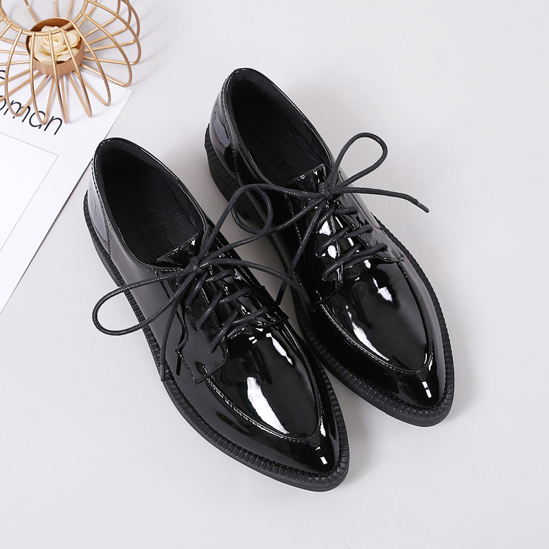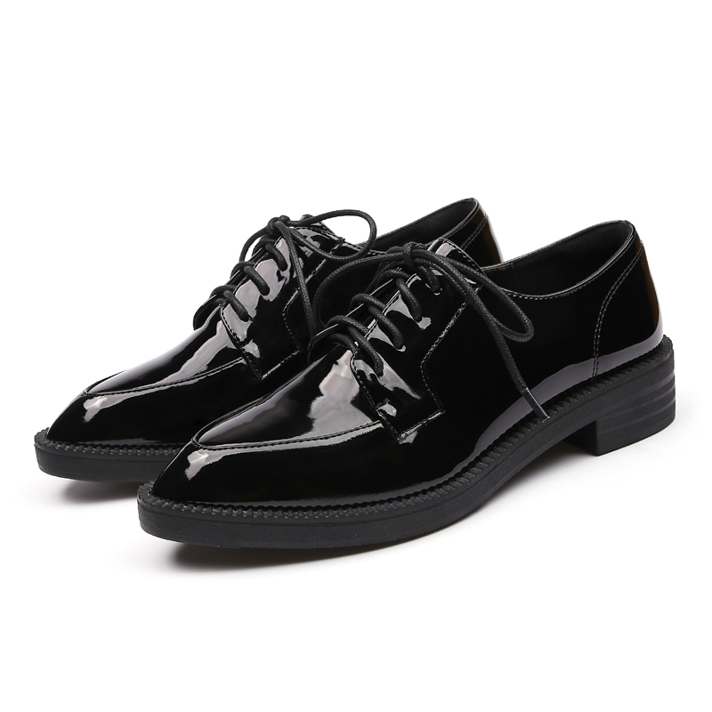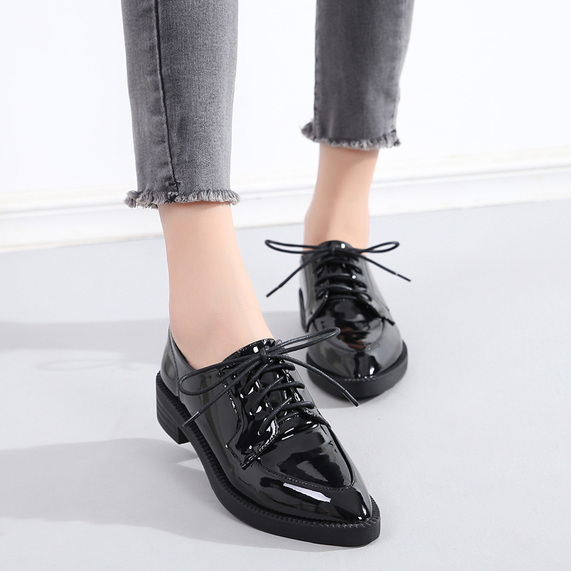 Tide Brack Little Leather Shoes Woman 2023 Spring New Leisure Black British Style Tip Rough Heels Single Shoes