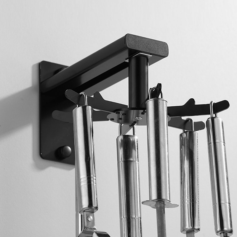 Black space aluminum kitchen hook free hole rotary shelf multi-function telescopic spatula spoon kitchen utensil storage rack
