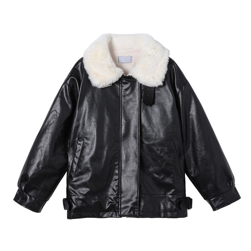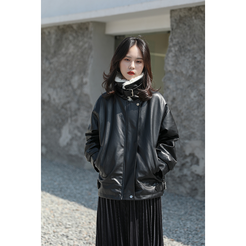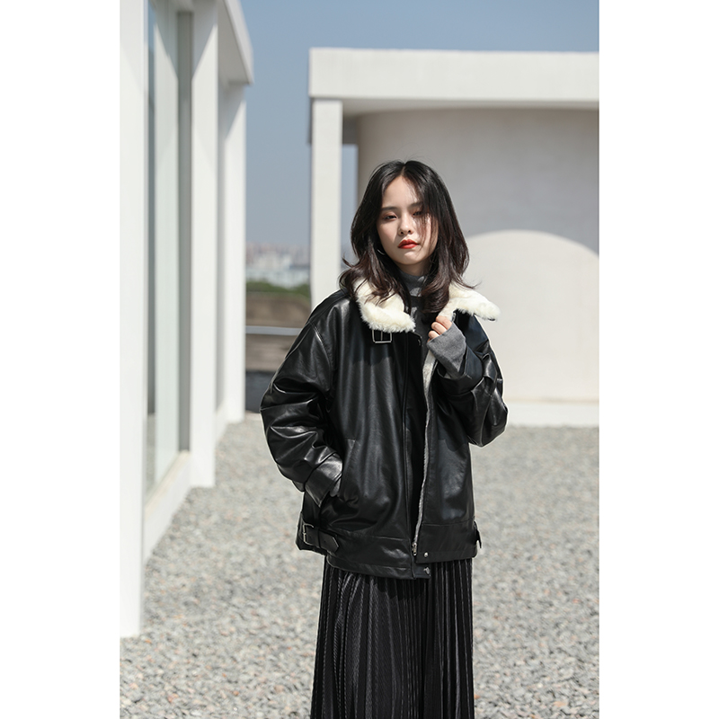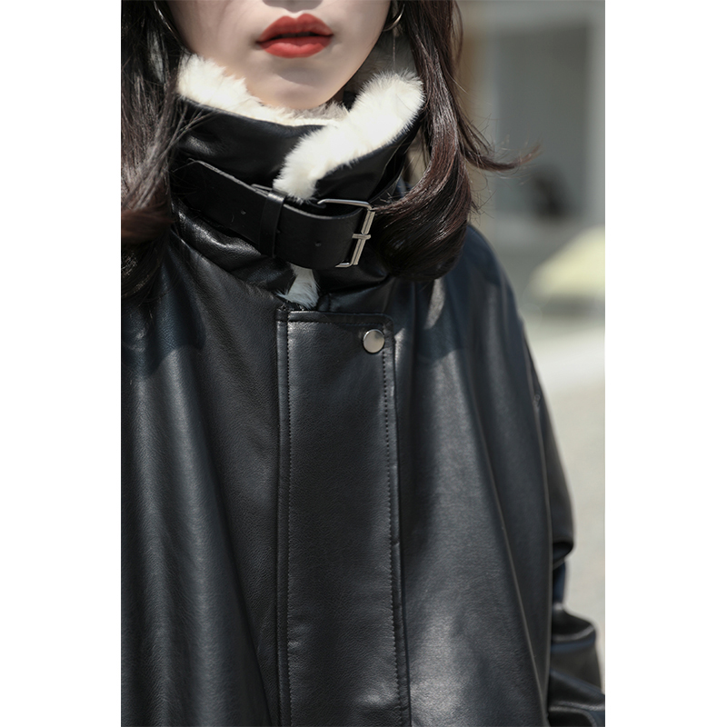 "Again Alley" black plush fur coat jacket woman 2021 new autumn and winter plus suede thickened loose fashion locomotive clothes