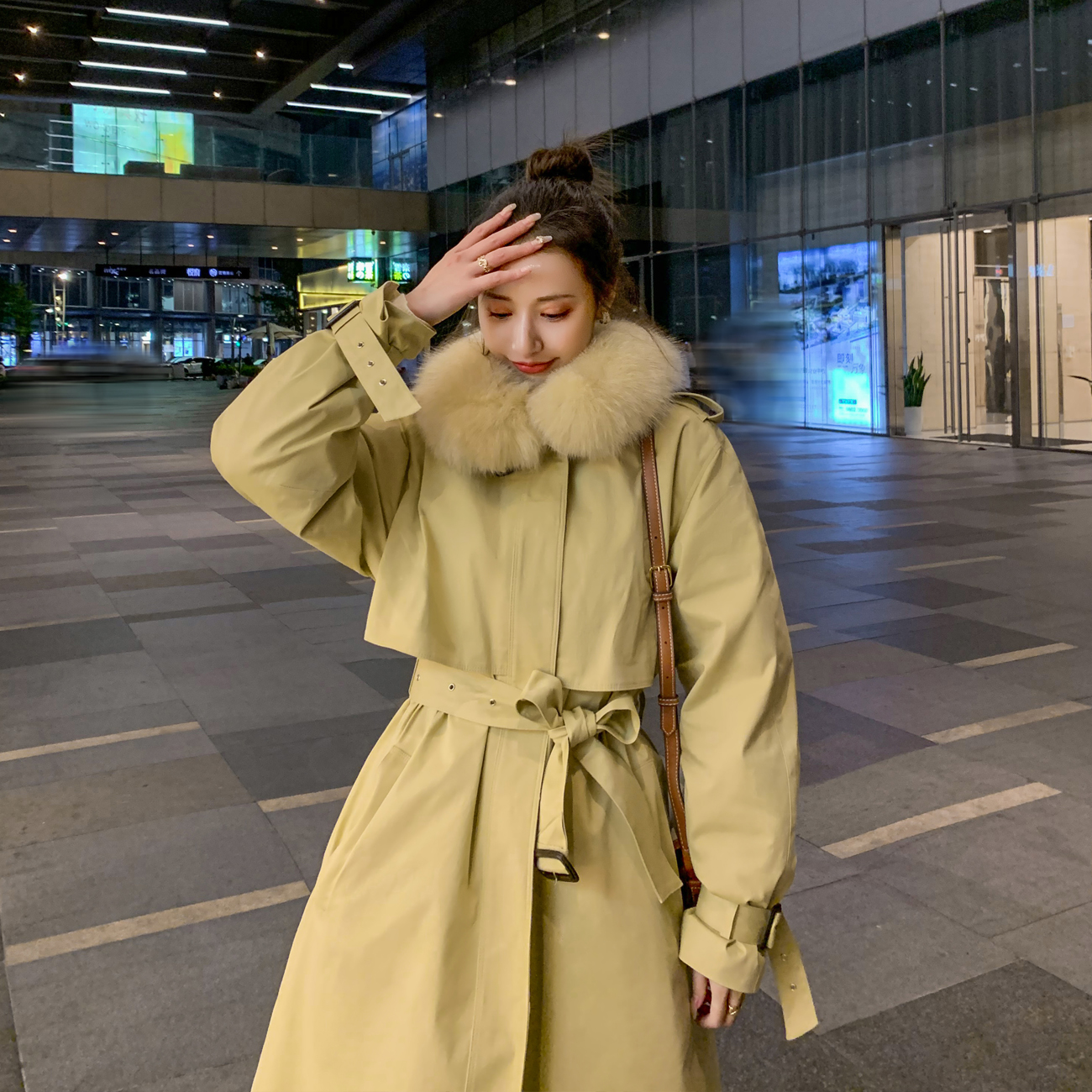 Pike winewear down jacket with female medium length version 2021 Winter new real wow collar white duck suede detachable liner jacket