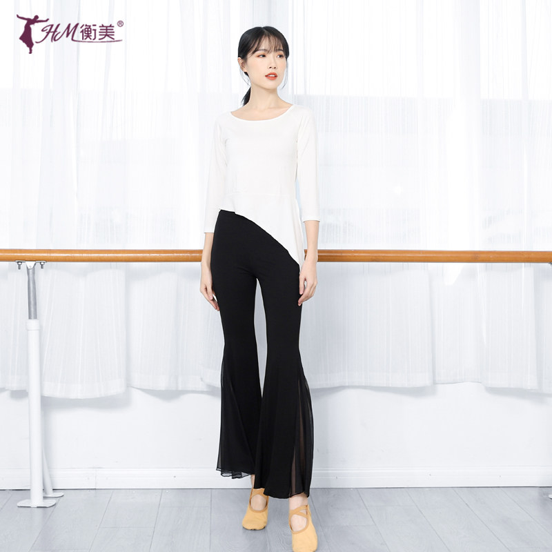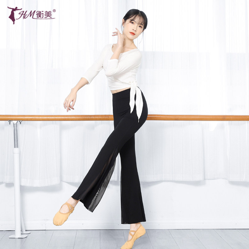 Modern dance costume Classical dance dance practice pants female adult Chinese dance wide leg pants body mesh flared pants