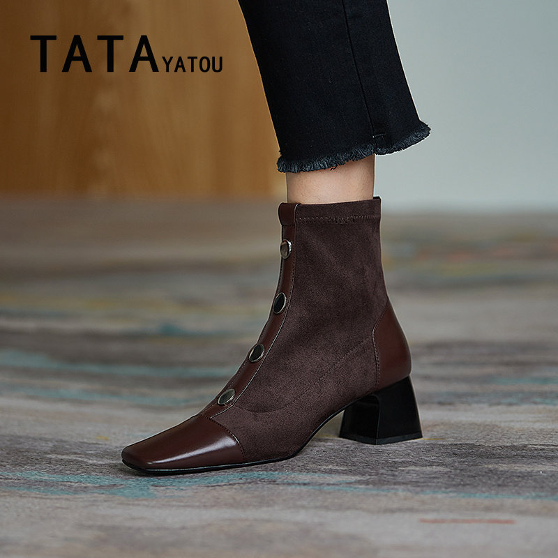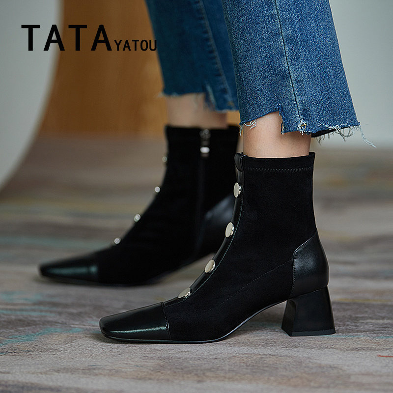 Tata Yatou his girl shoes strength thin boots in the tide and elegant short boots in the middle of the head