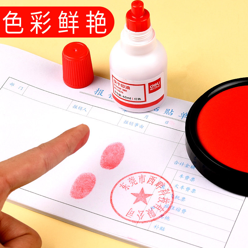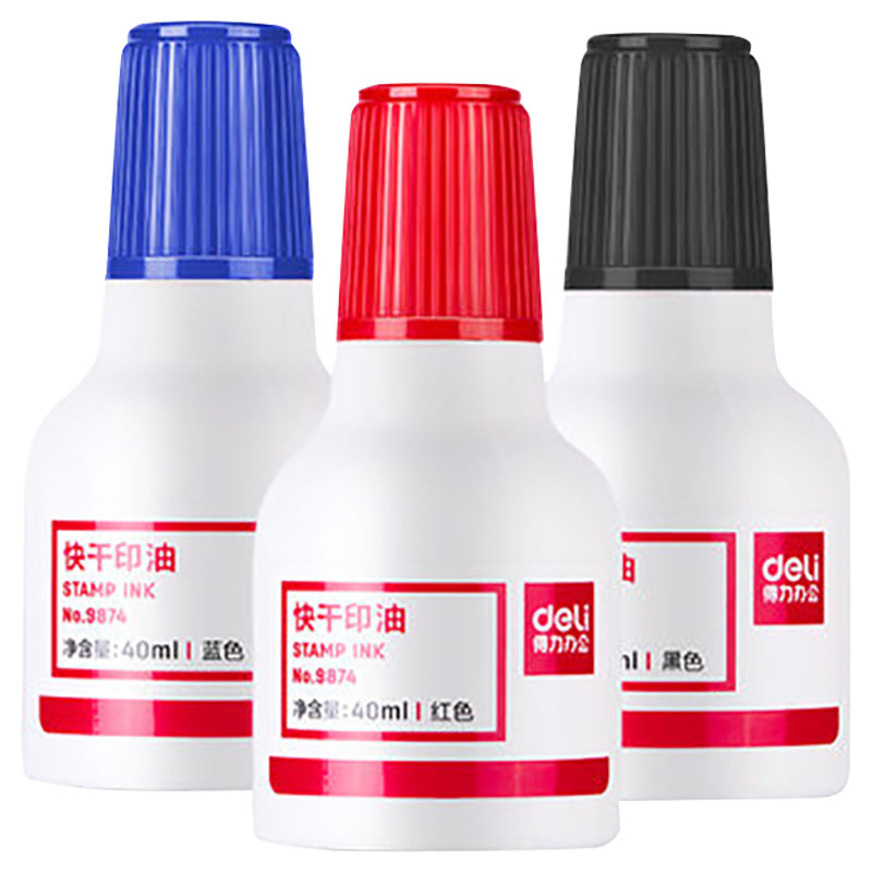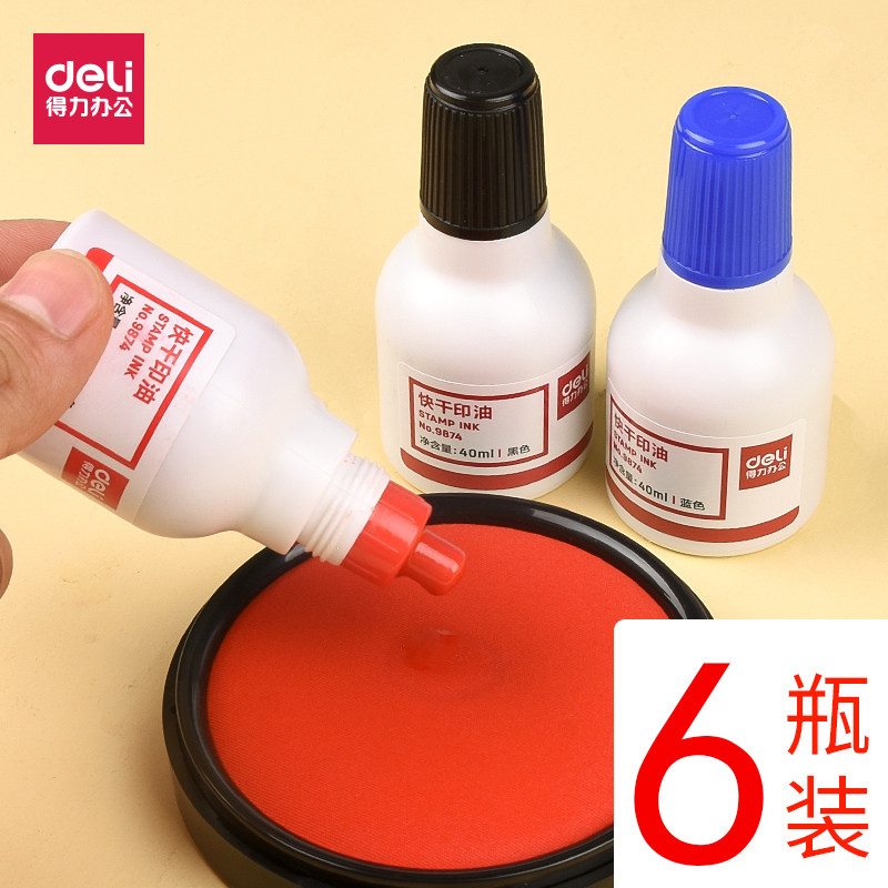 6 bottles of Deli 9874 quick drying ink stamp printing table supplement liquid 40 ml large capacity blue black red printing mud printing mud red ink official seal office financial supplies printing ink ink plus ink