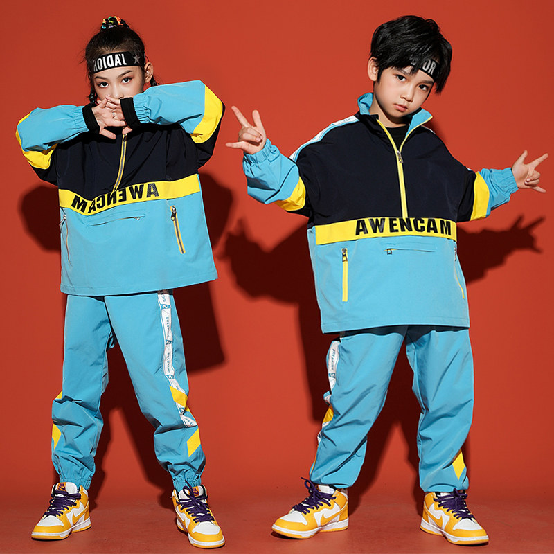 Children's hip-hop suit boys and girls hip-hop personality performance clothing children's hiphop drum performance clothing autumn clothing