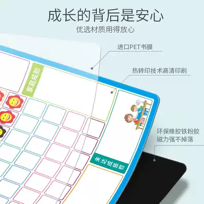 Children's growth self-discipline table iron wall stickers reward stickers A family of three and four home rewards and punishments points card primary school students good habits record table Behavior Development daily clock-in table plan