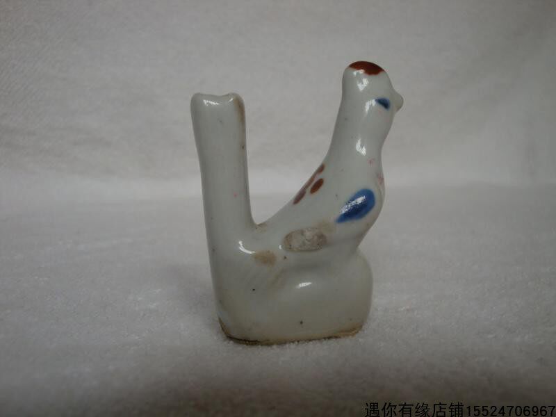 Old Green Flower Glazed Red Porcelain Bird Whistle Toy Craft Gift Swing Accessories Collection Nostalgia Old Fashioned Porcelain Items Furnishing Objects