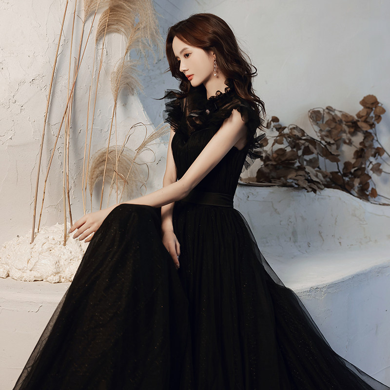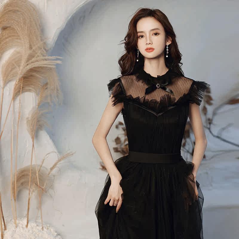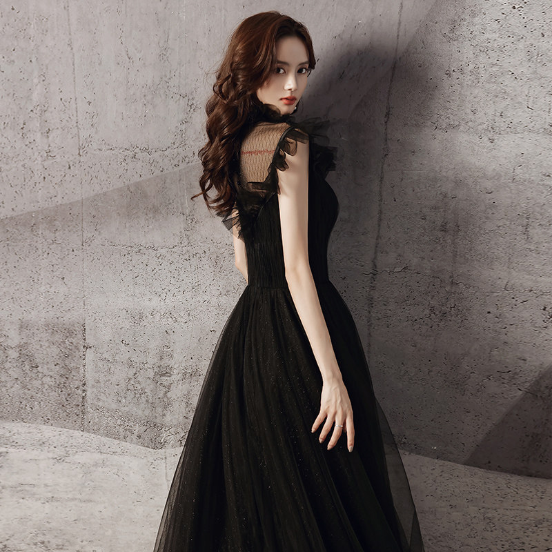 Black high-end evening dress dress 2021 New light luxury temperament celebrity banquet niche design tailing high texture