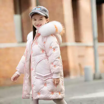 Next win girl down jacket 2021 Korean version of foreign school children thick white duck down long coat
