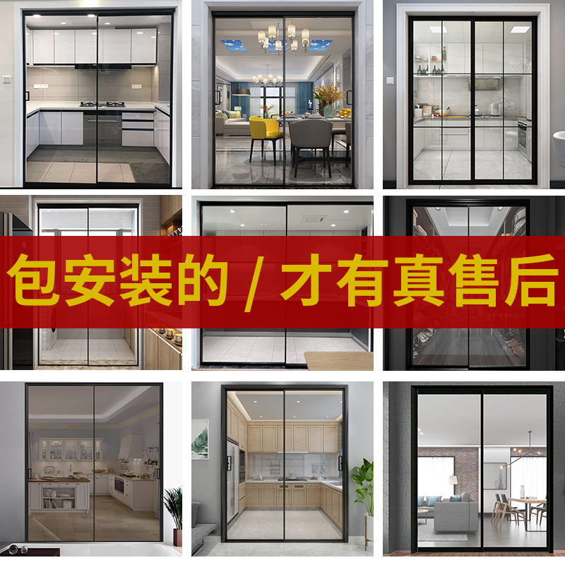 Kitchen sliding door extremely narrow side hanging rail three linkage long rainbow glass sliding door balcony living room aluminum alloy folding door