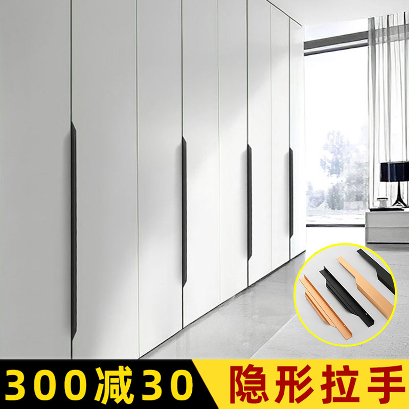Thumb-style wardrobe lengthened black champagne gold invisible dark handle modern minimalist overall cupboard drawer free of punch