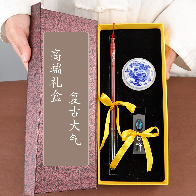 (Ankang)Fetal hair pen seal set gift box printing mud tassel