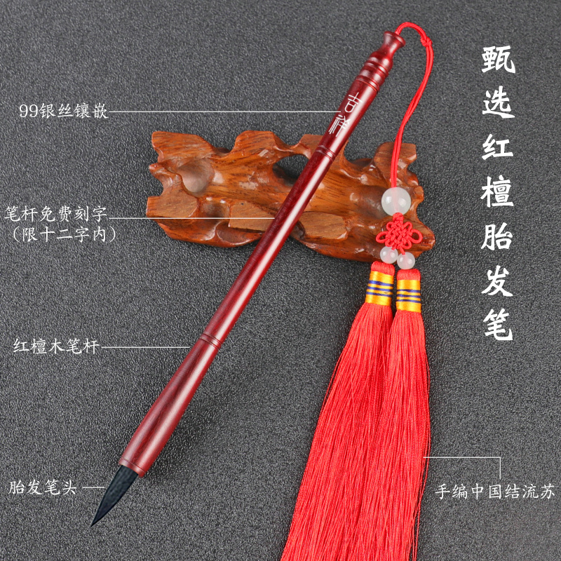 (Auspicious) Inlaid silver fetal hair pen gift brocade box tassel