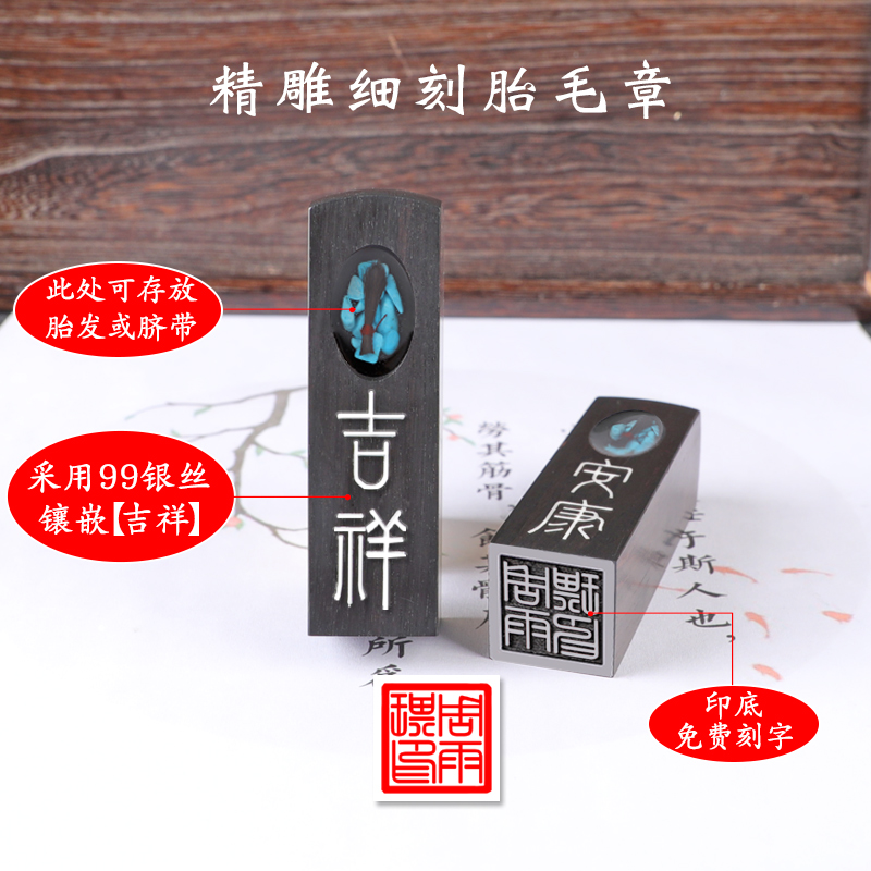 (Auspicious) Fetal hair pen seal set gift box printing mud tassel
