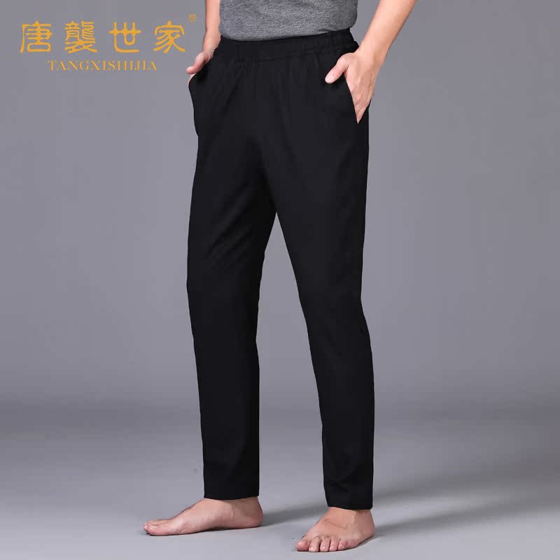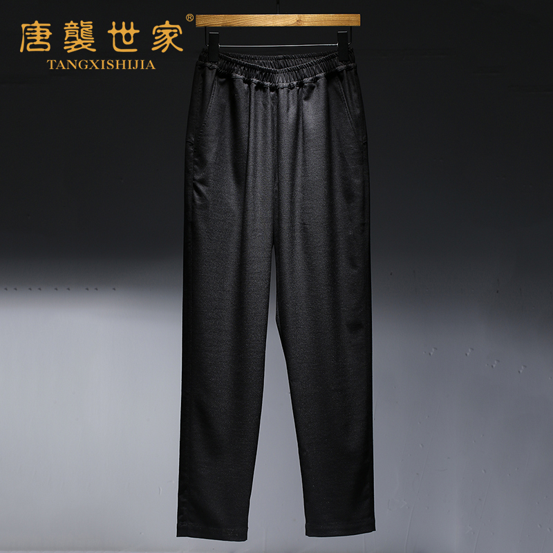 Tang Li Shijia men's Chinese style casual elastic waist straight pants spring and autumn loose men's pants Chinese style casual pants