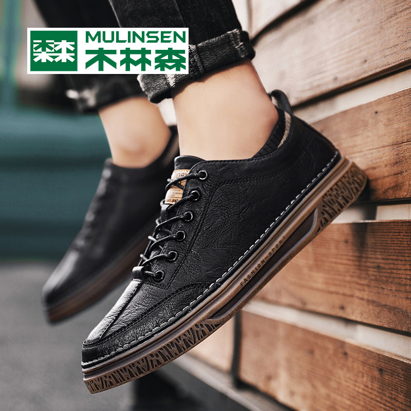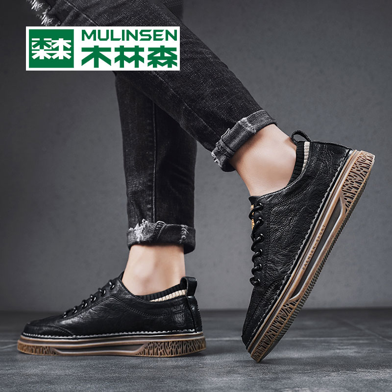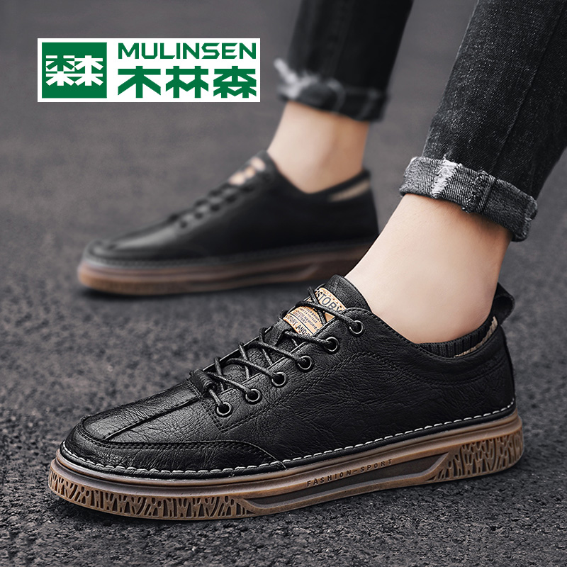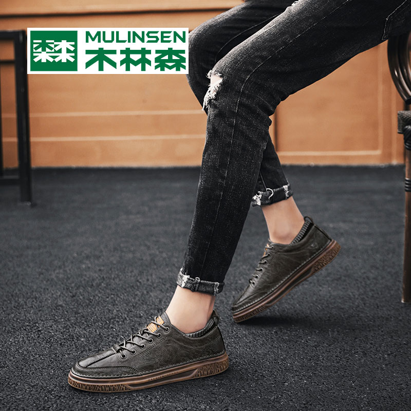 Mulinsen men's shoes 2021 new trendy low-top shoes all-match British leather shoes men's spring casual sneakers Korean version all-match
