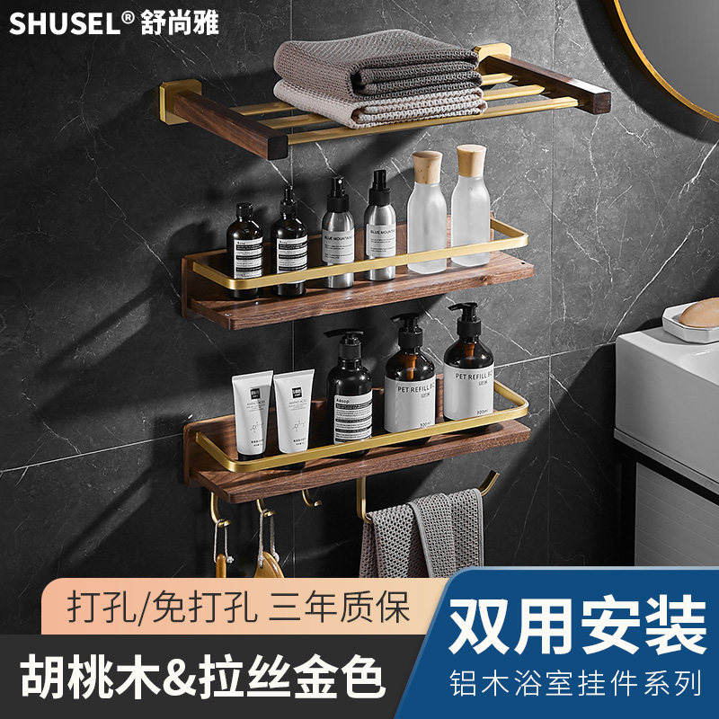 Perforated Dressing Room Solid Wood Shelve Towel Bath Towel Rack Walnuts Wood Bathroom Toilet Golden Containing Layer Rack Wall-mounted