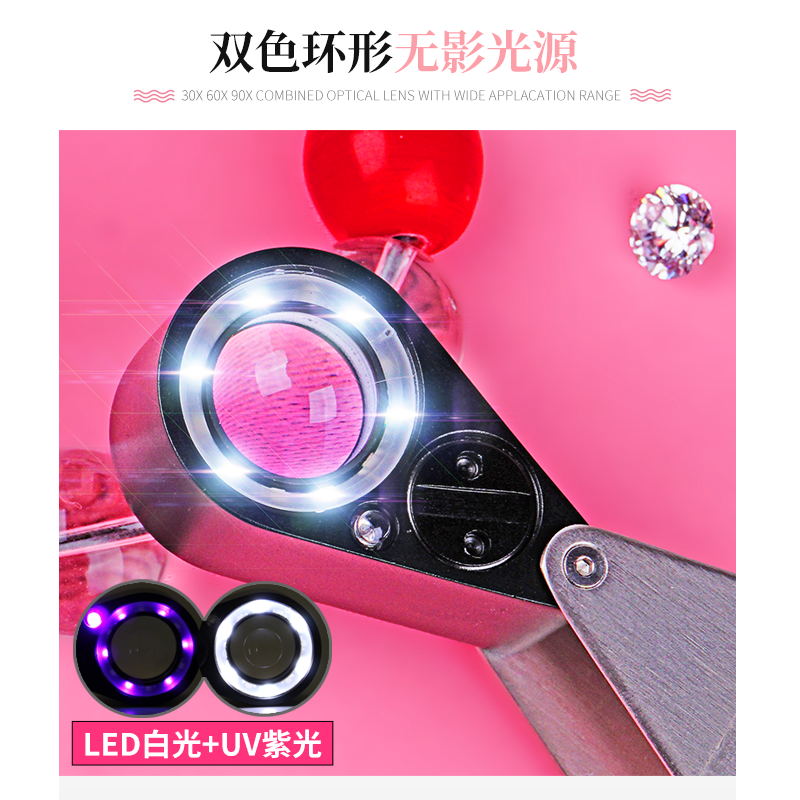 Byshitong Jewelry Magnifying Glass 40 times with light uv purple light LED30 identification hair diamond diamond ring look waist size jade jade jade crystal 20 HD folding portable 10 text play ring laser code