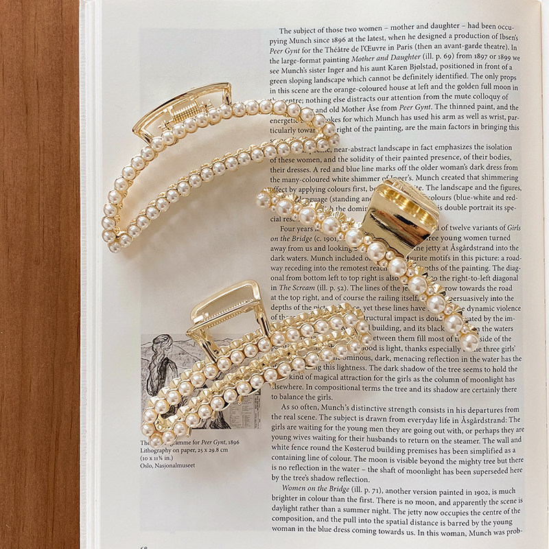 Single Row Pearl Shark Clip Double Row Pearl Rectangular Grip Clip Double Row Pearl Crescent Grip Clip
