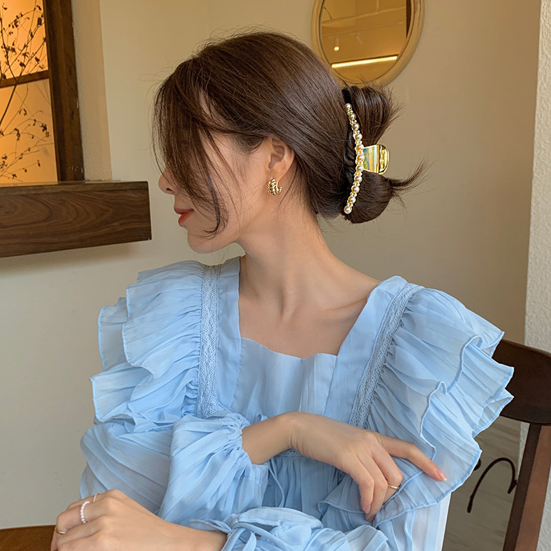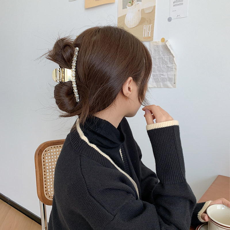Pearl Grab Clip Large Shark Clip South Korea Elegant Temperament Rear Brain Spoon Hair Clip Advanced Sensation Wash Face Hair Accessories Tide Ins