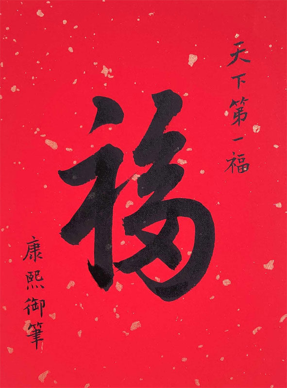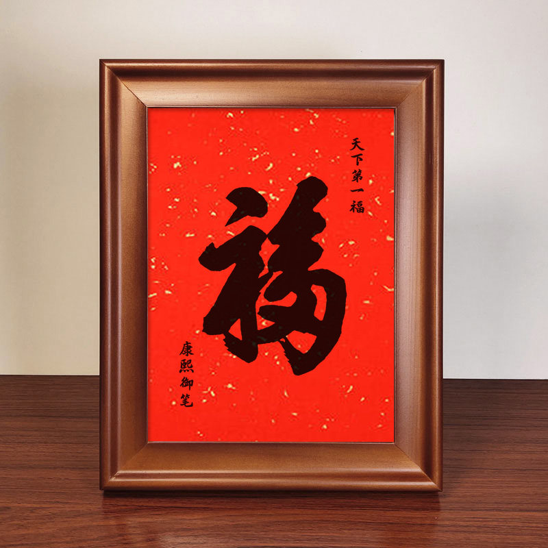 Fu word Kangxi world's first blessing calligraphy works decoration calligraphy and painting table Chinese festive living room calligraphy and painting hanging painting