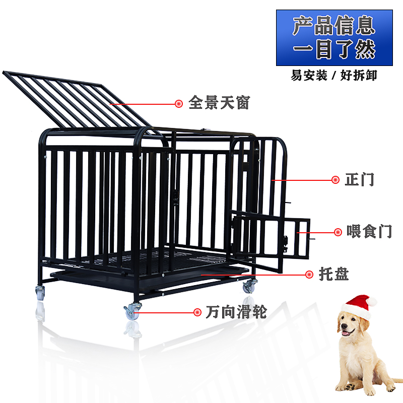 Full square pipe dog cage Large canine with toilet small and medium dog gold Maura Labrador border Shepherd dogs Indoor domestic pets