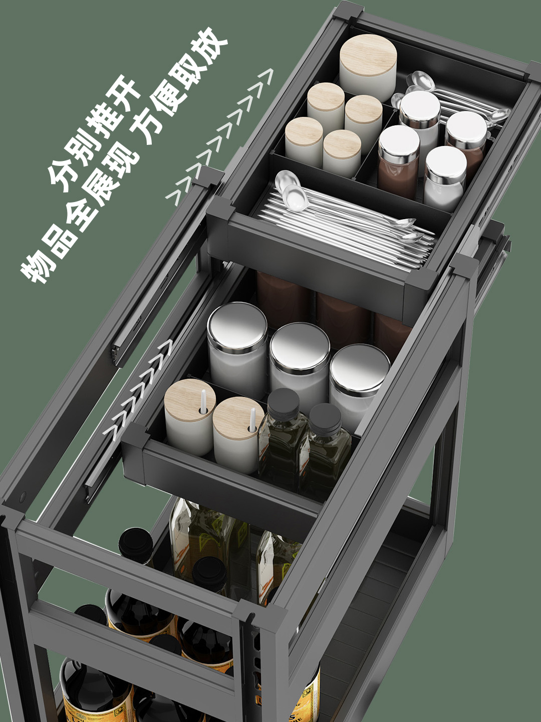 Misiku kitchen cabinet pull basket cabinet magic draw seasoning pull basket space aluminum three-layer cabinet built-in shelf