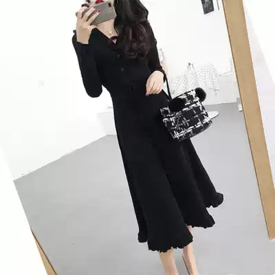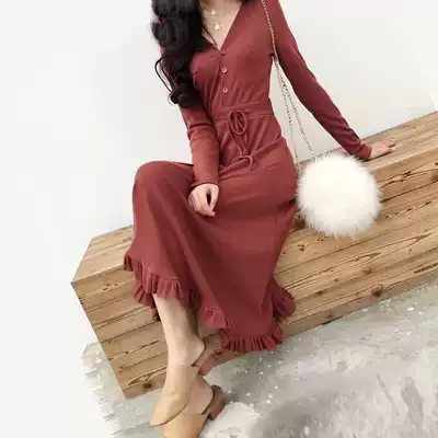 2020 autumn and winter new over-the-knee long skirt with a thin waist and slim Hepburn style knitted inner dress
