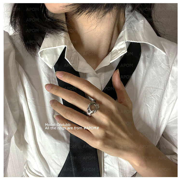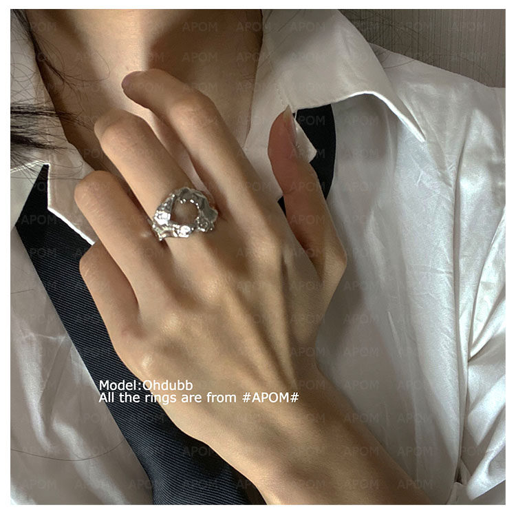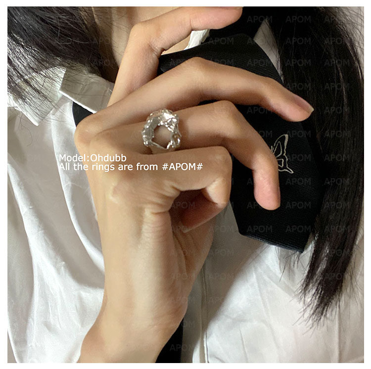 APOM refuses incomplete 925 sterling silver neutral niche texture open ring adjustable dark wind ins men and women