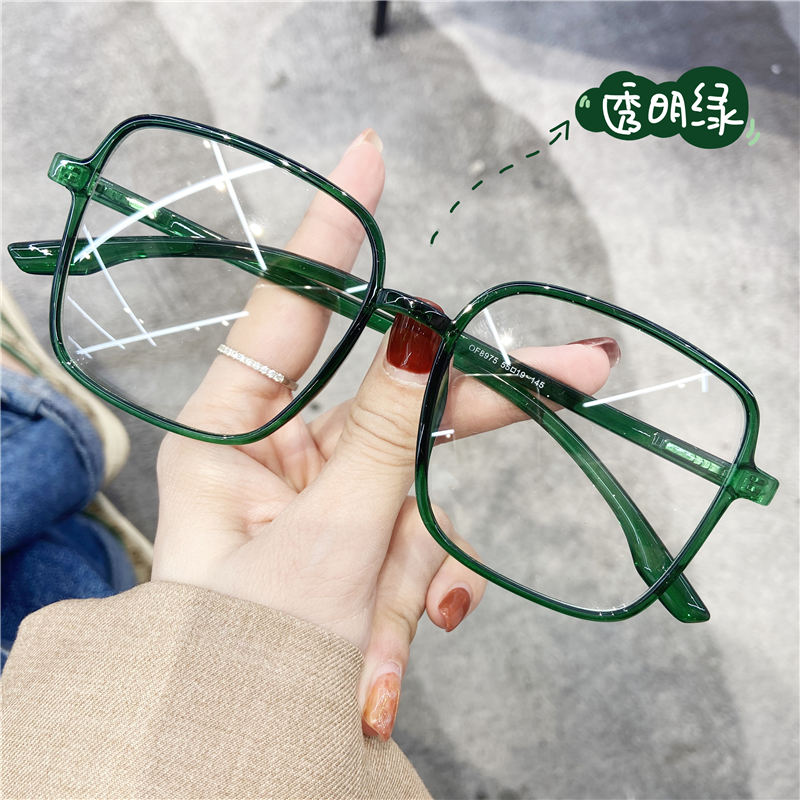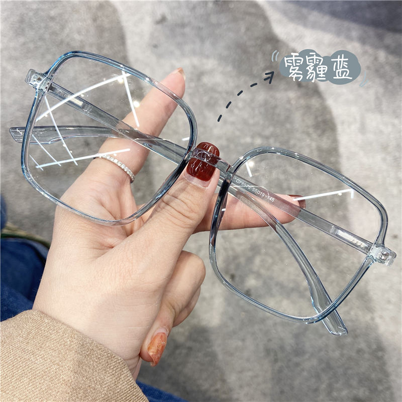 Korean version of the ultra-light square large frame TR90 transparent brown glasses frame female melanin face round face white and thin small red book male