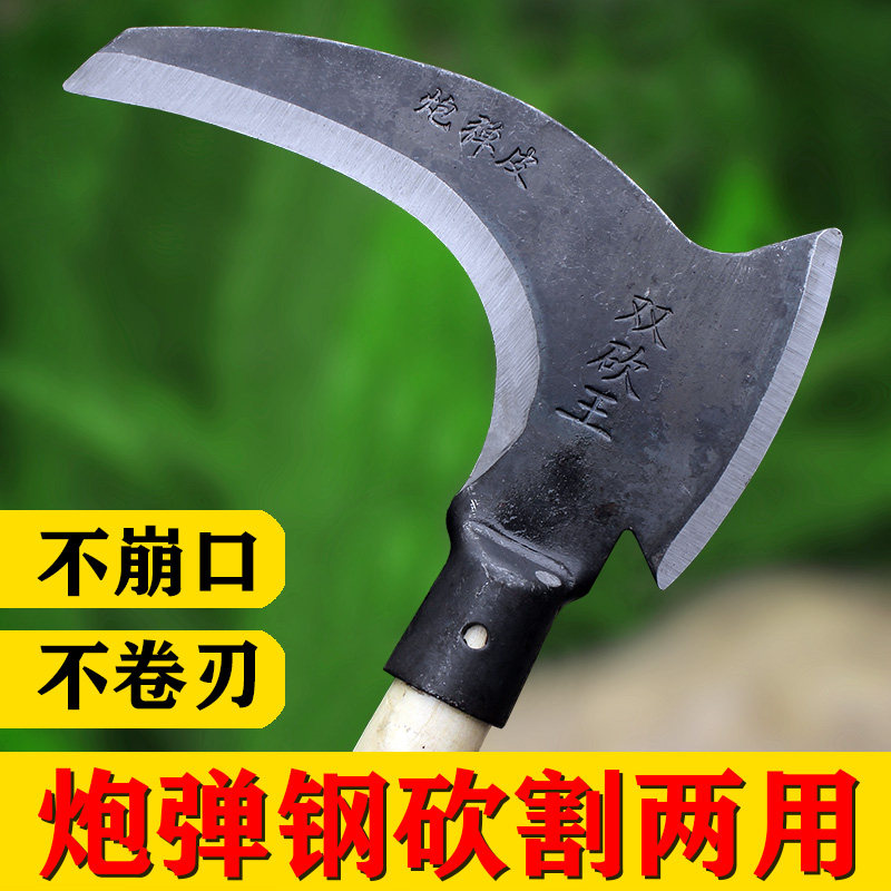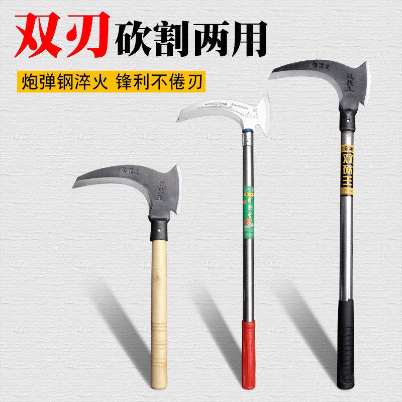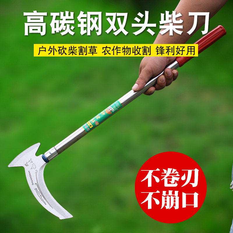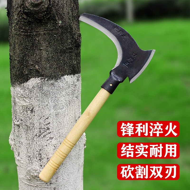 Double slash sickle open road manganese steel cut tree wood knife sickle mow grass knife weeding sickle head farmer user outside chopping wood knife