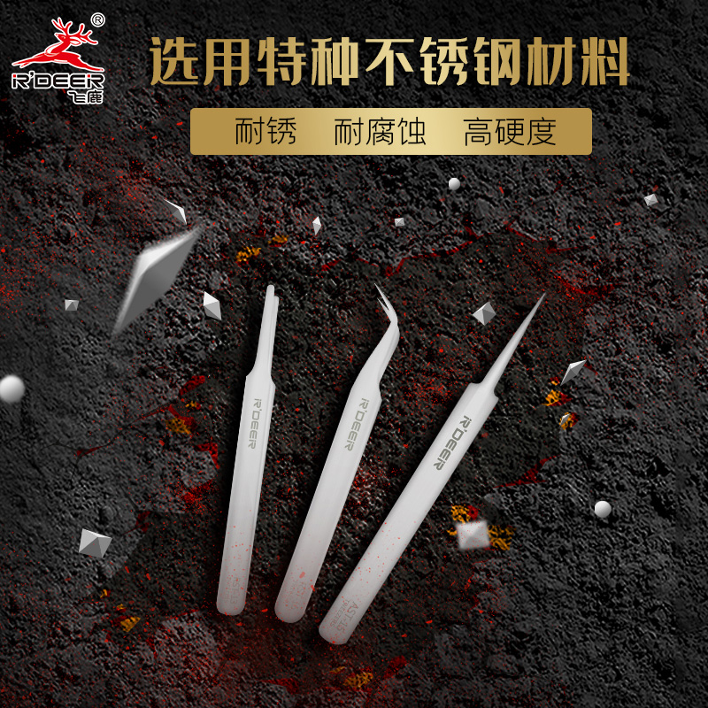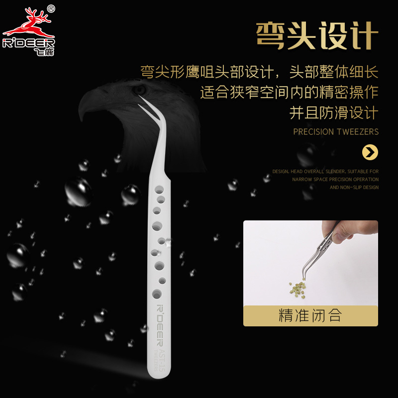 Flying Deer Tool Stainless Steel White Tweezers Thicken Plus Hard Nie Tip Clips Precision Elbow Tweezers Swiftlet