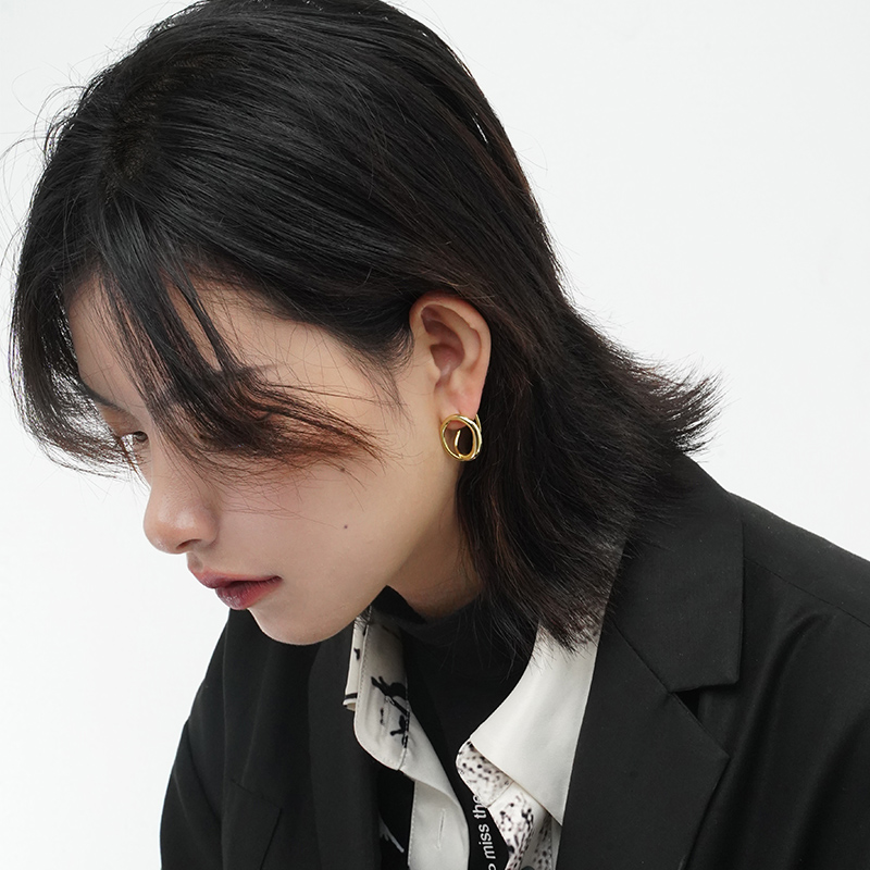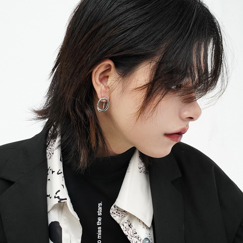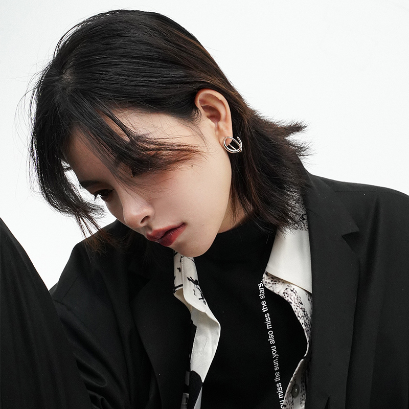 SUMIYAKI earrings women's new circle earrings niche design high-end three-dimensional round earrings cool earrings trend