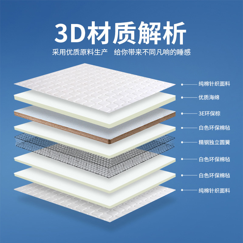 3E coconut palm mattress green environmental protection formaldehyde-free independent spring soft and hard moderate 1 5 meters 1 8 meters can be customized and folded