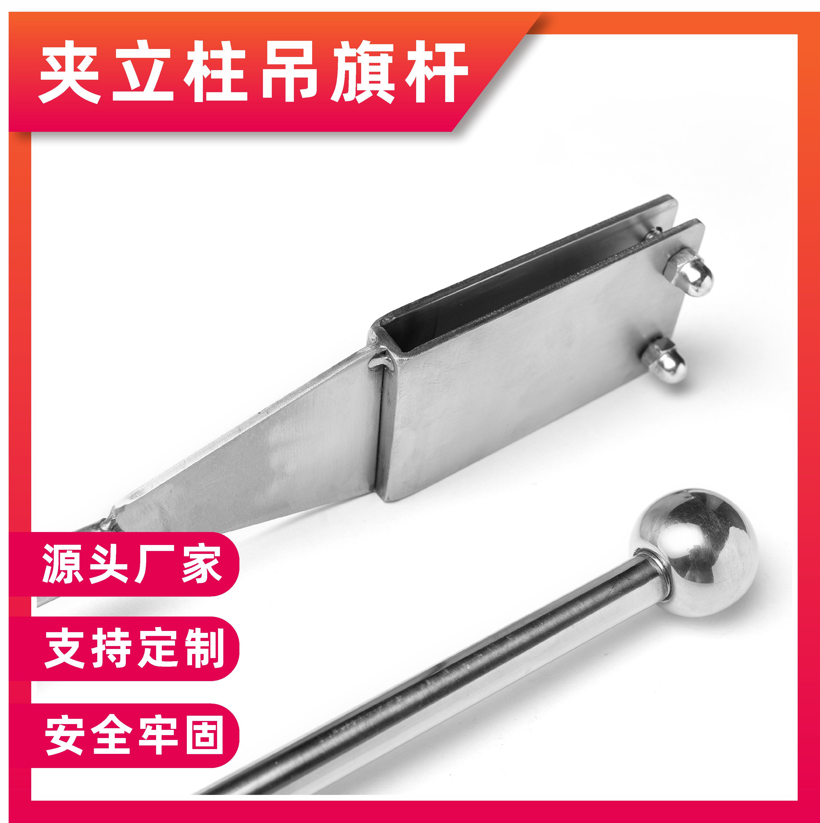 Shopping mall glass flagpole clamp column atrium guardrail flagpole stainless steel hanging flagpole advertising pole custom