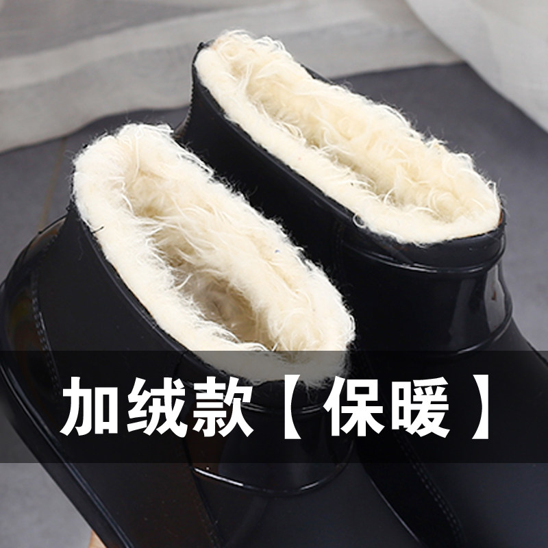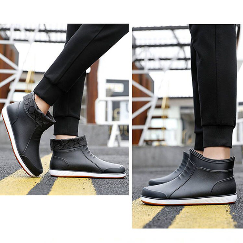 Short tube rain boots men's warm waterproof anti-slip fashion fishing work wear-resistant rubber shoes winter plus velvet rain boots water shoes